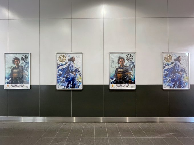 名鉄東岡崎駅東改札口を出て1階の通路に大河ドラマ「どうする家康」のメインビジュアルポスターと東海地方先行ビジュアルポスターが並んで通路の両サイドに貼られています。 https://t.co/cVado0faQY