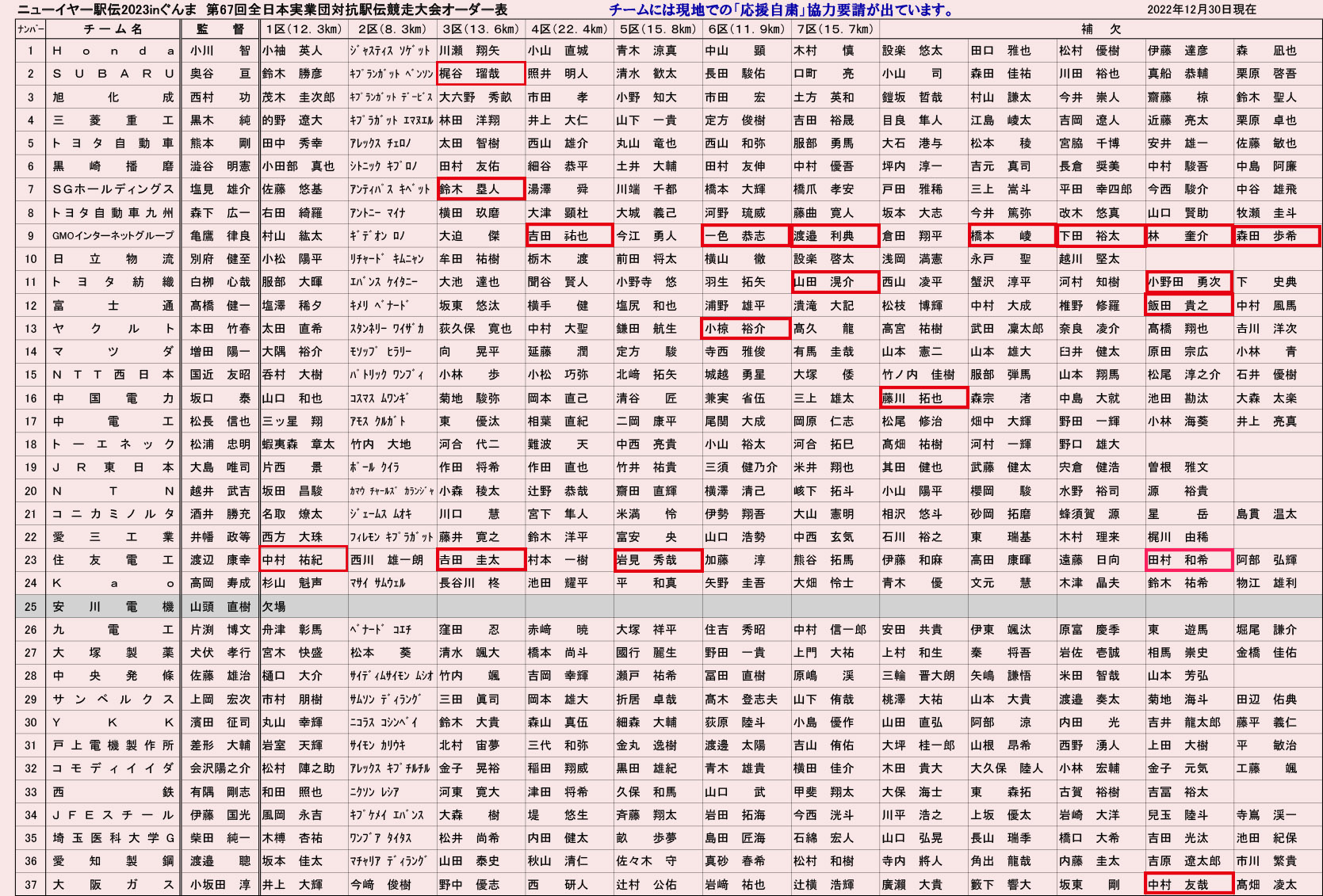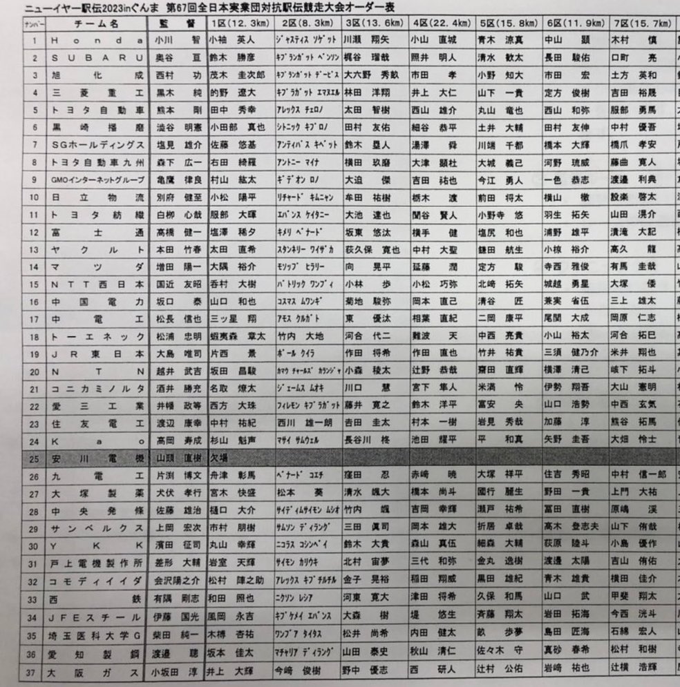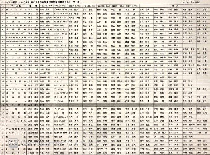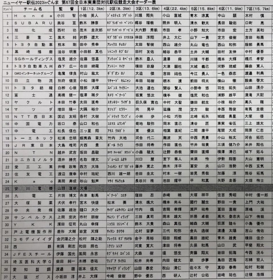 ニューイヤー駅伝のオーダーが出ました!