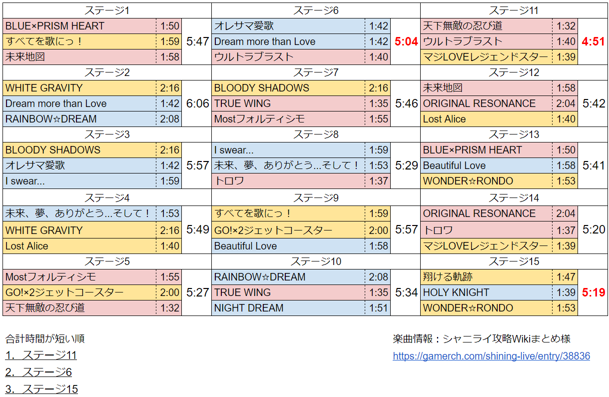 シャニライ タウンイベ 「World Travel Magazines -イタリア編-」 楽曲時間一覧