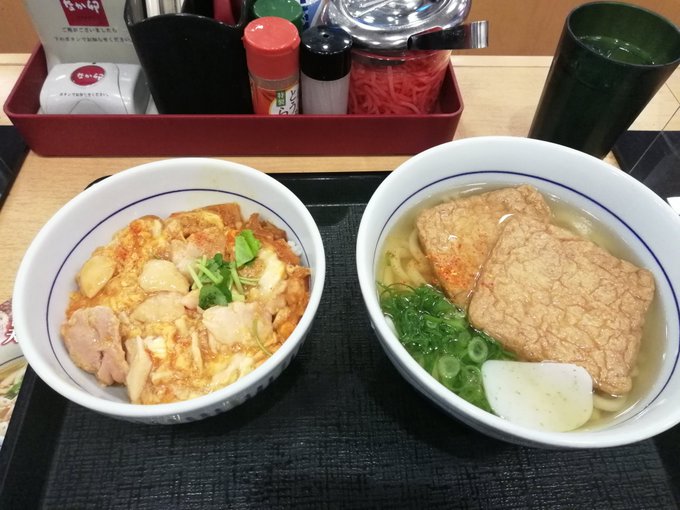 雪降ってるから向かいのなか卯でキツネとミニ親子丼セット。傘間違って持って帰られたがな。 https://t.co/O2Ex8zIrvq