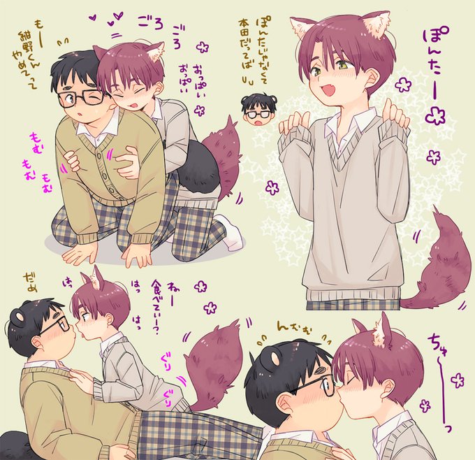 キツネの紺野くんはタヌキの本田くんが食べたくて人に化けてます、みたいな絵 https://t.co/2NwfT9EJEB