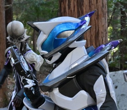 仮面ライダージーンなんとなく2Pカラーのギーツみたいに見える。横顔なんかまさに逆向いたキツネって感じで