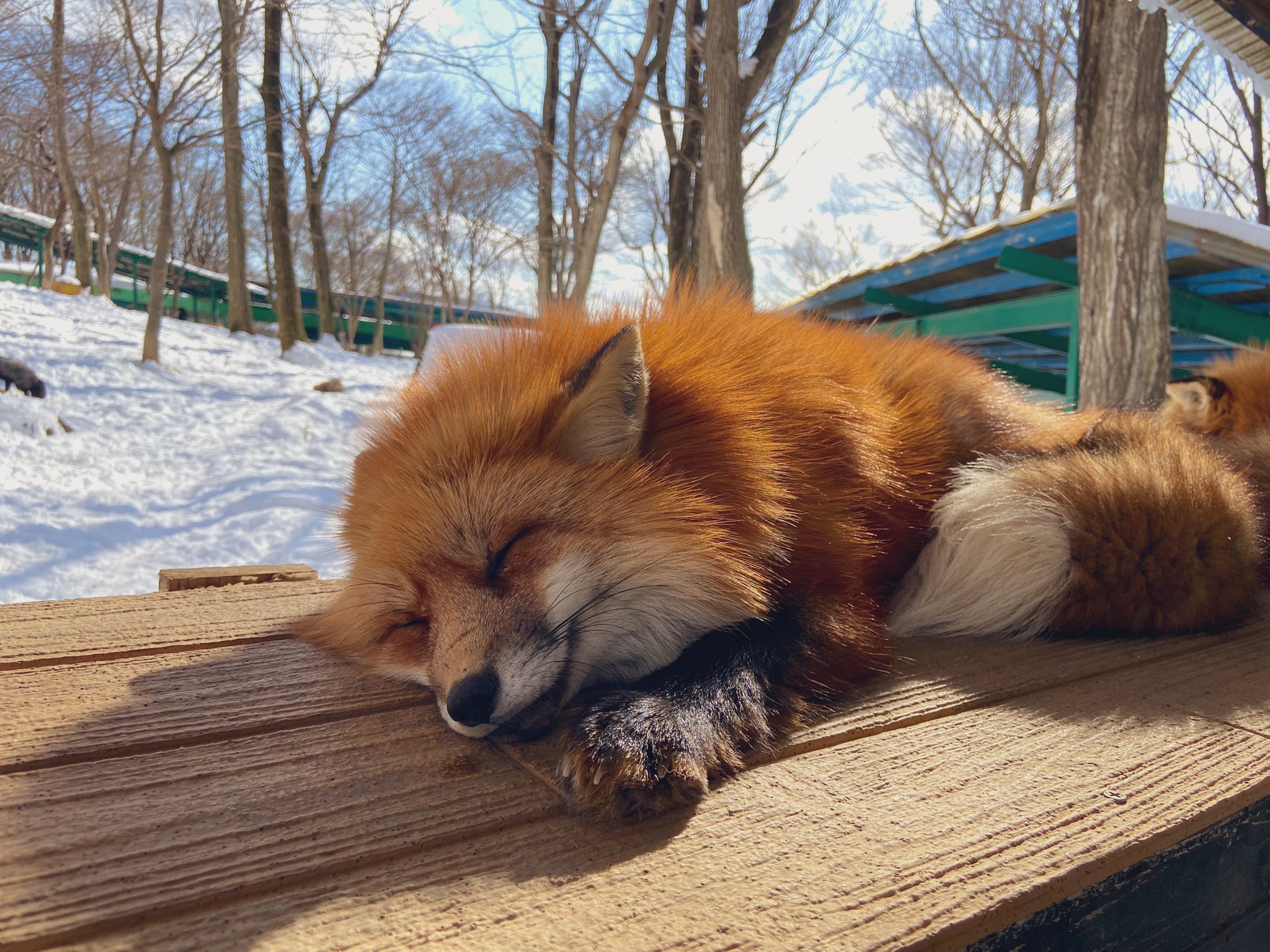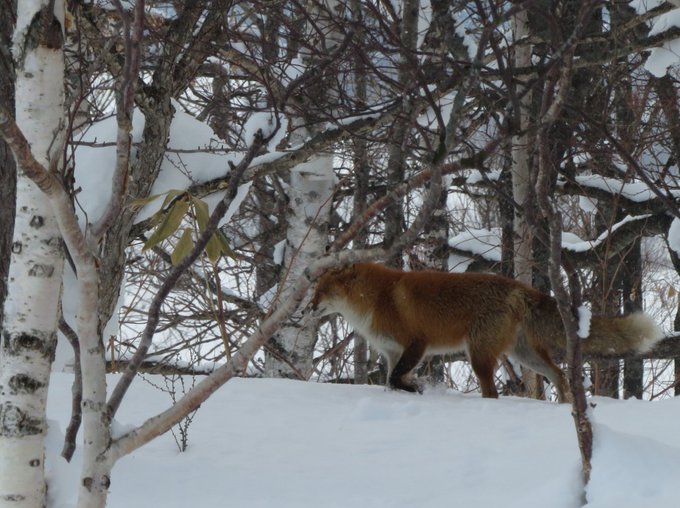 雪キツネさんと遊んでるみたい❄️ https://t.co/UbWiceoQJa