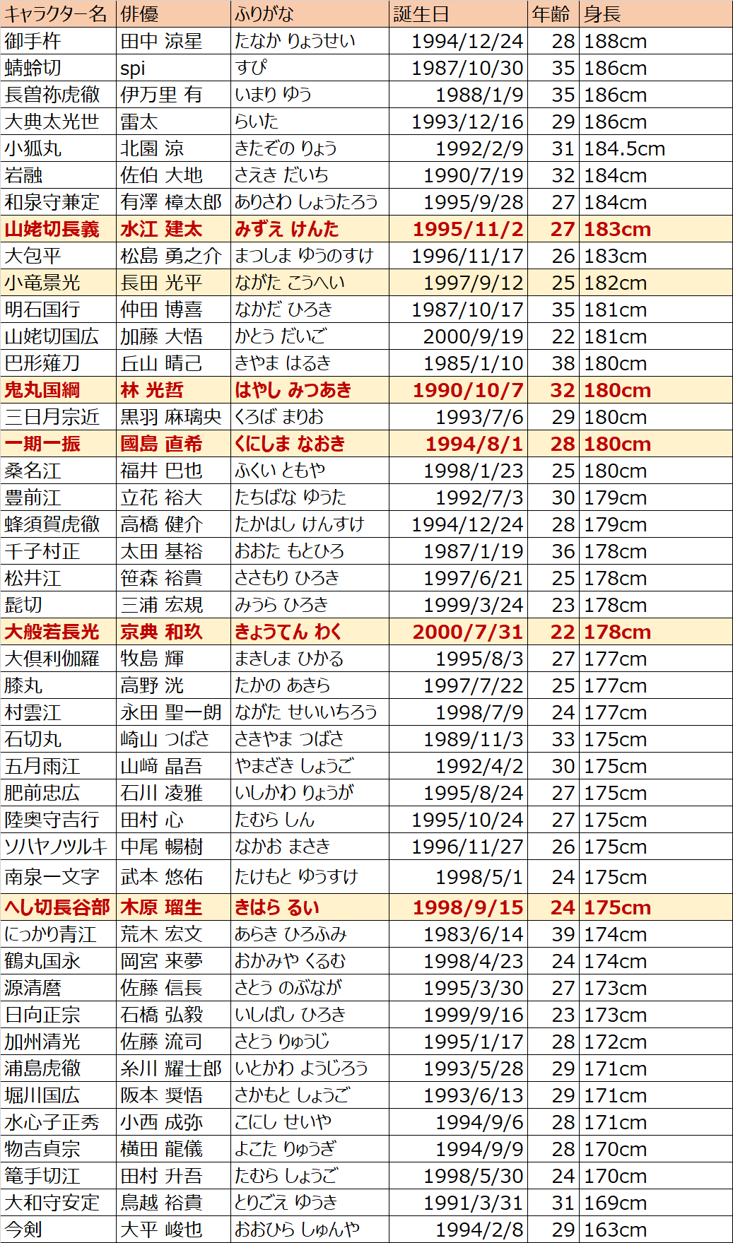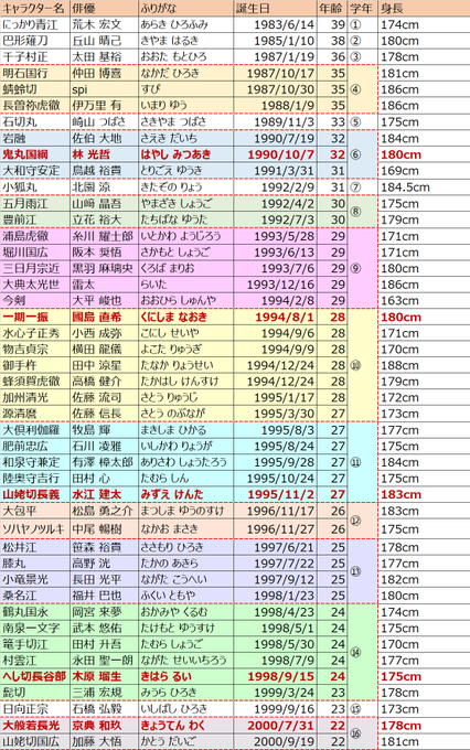 刀ミュ新作おめでとうございます!新しいキャストさんも含めて年齢順と身長順に並べました!!!!楽しみ!!!