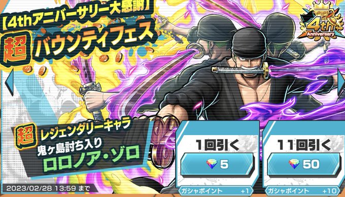 超レジェンダリーキャラ「★4 海賊王 ゴール・D・ロジャー」が、特別なイベントで実施する「超バウンティフェス」で登場❗