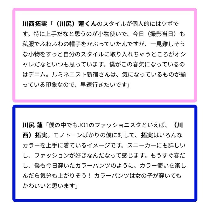 #JO1 の川尻ナンデスと河野ナンデスが