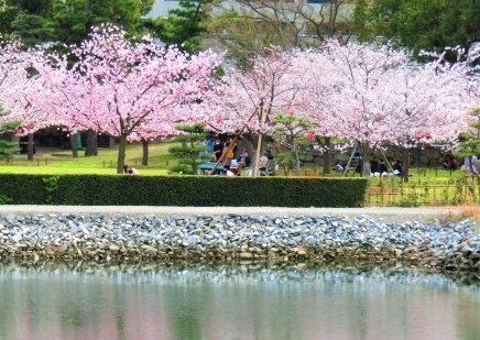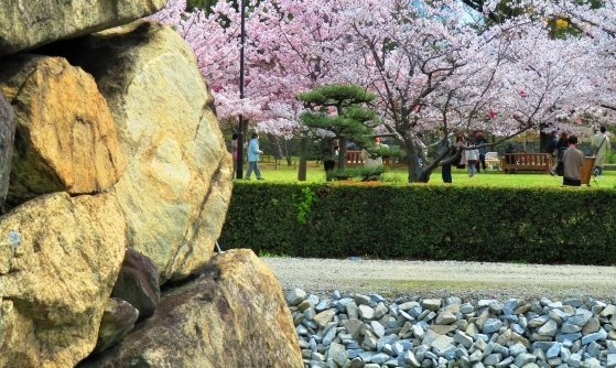 城跡の大半は舞鶴公園として、当時の外堀が大濠公園として整備されています、桜の名所ですよ!
