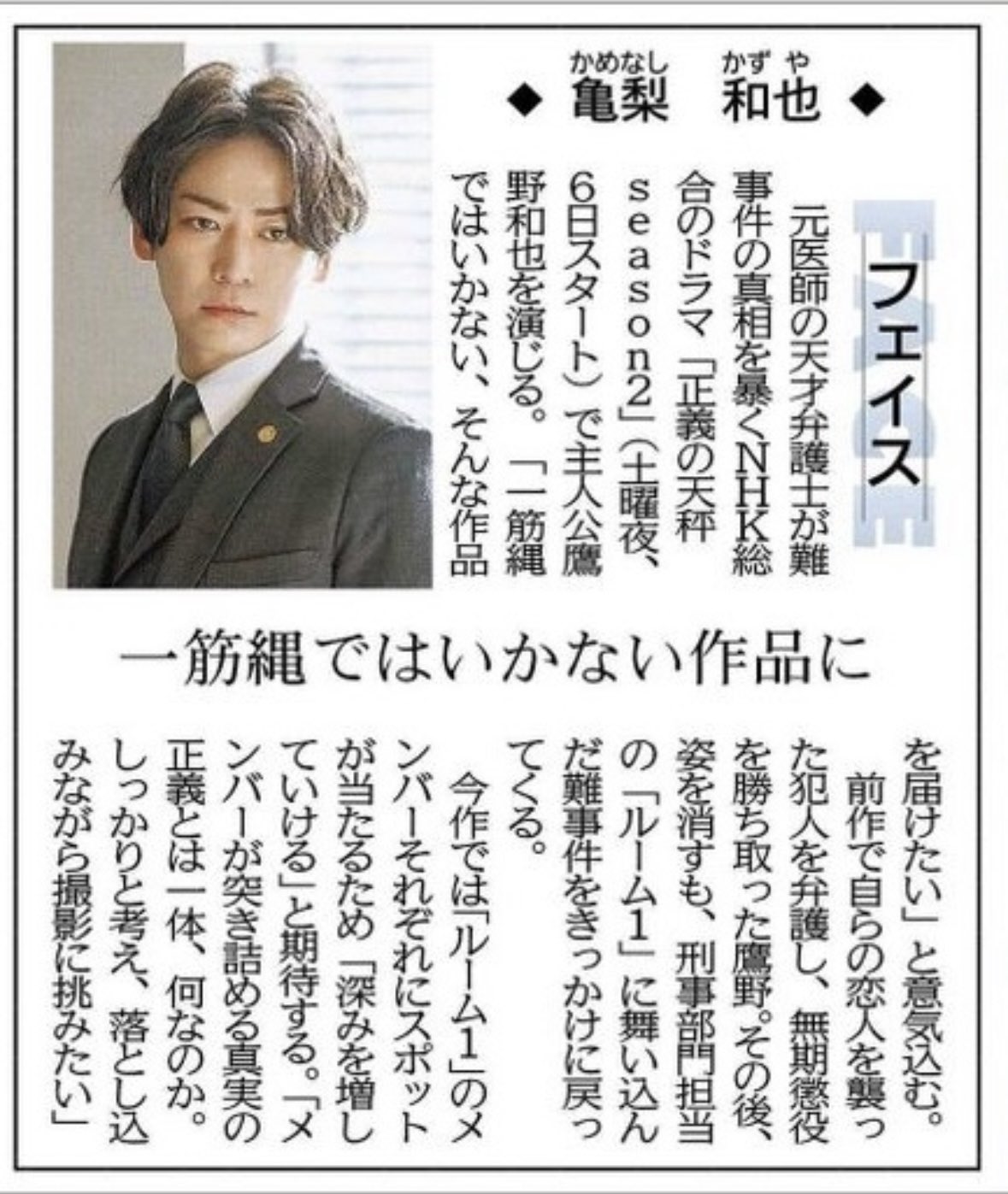 本日のスポーツ報知紙面で #KATTUN #亀梨和也 さんのインタビューが(めちゃ)大きく掲載されています。カッコイイ一枚。ぜひ見てみてください📰✨👀