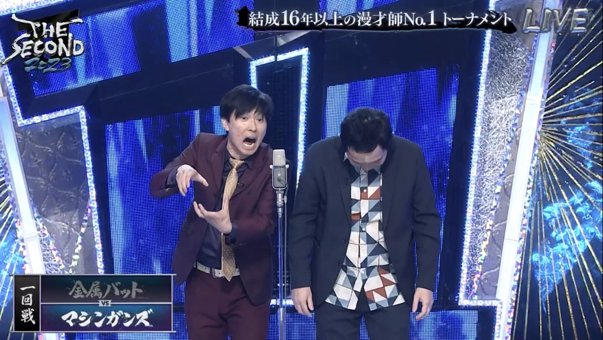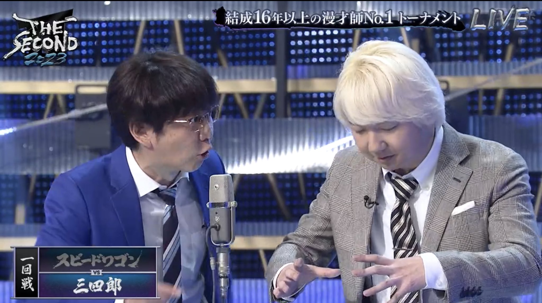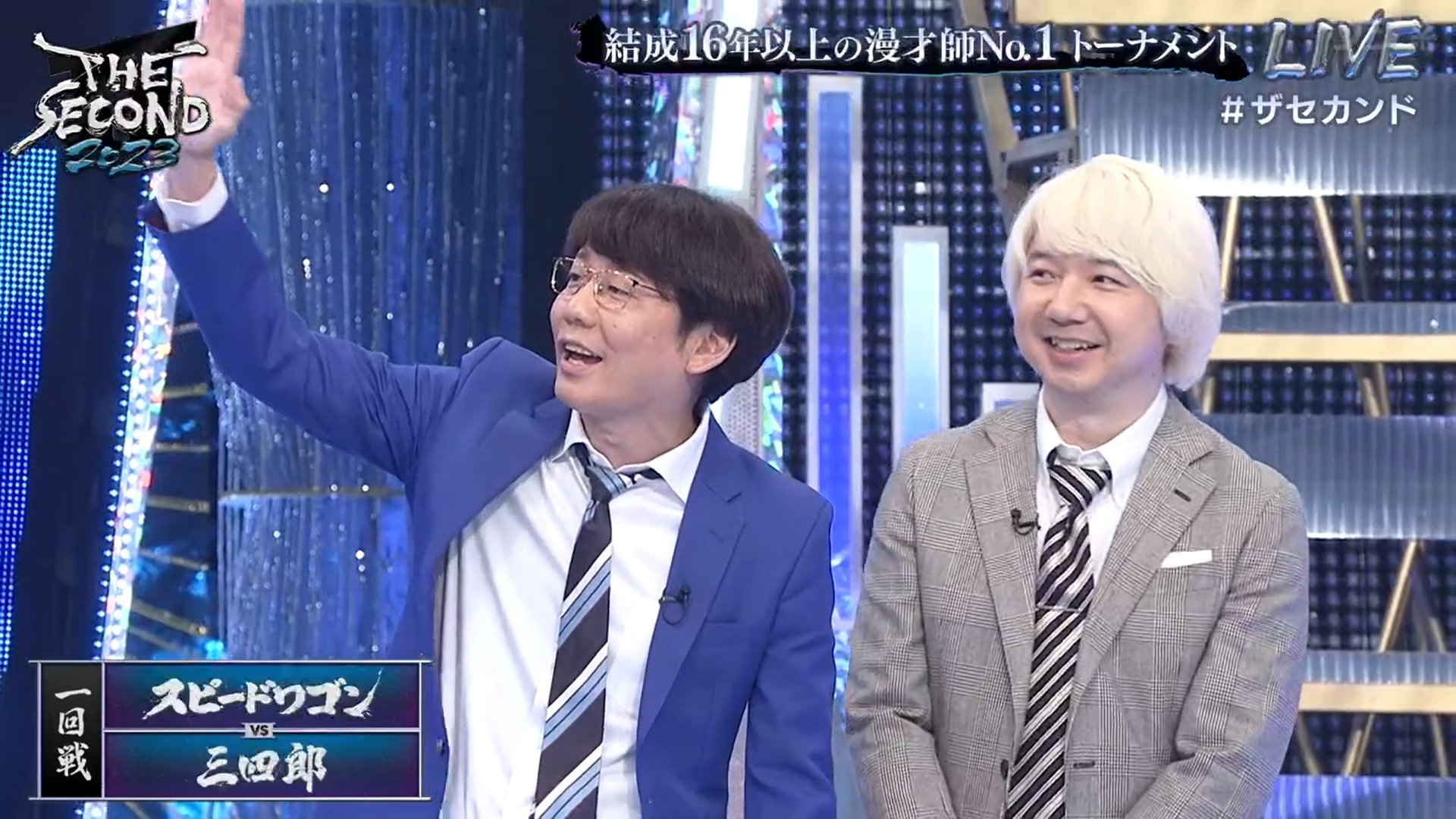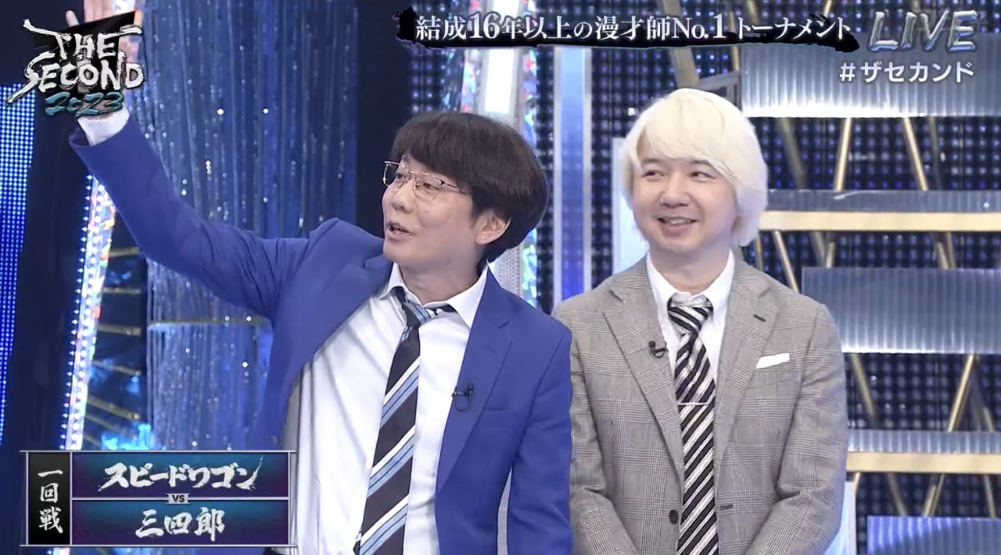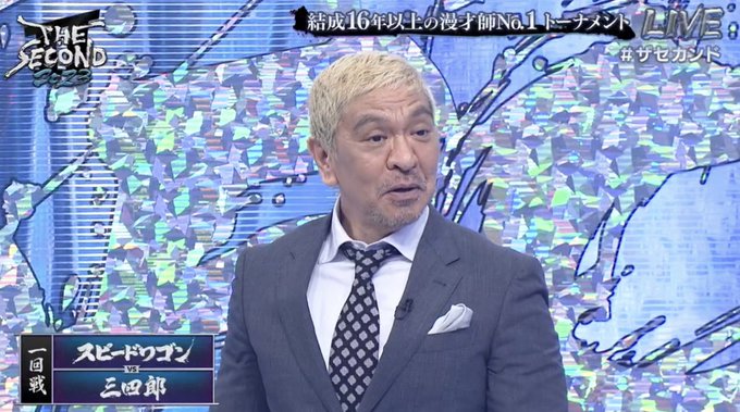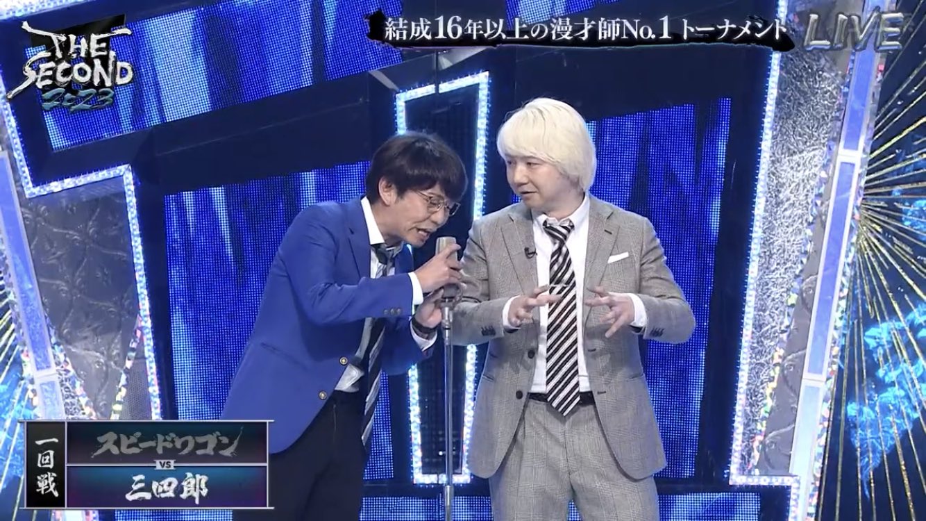 ザセカンドのセットが青×銀なのって、M-1のセットが赤×金だからなのか? https://t.co/RL8HxmU8py
