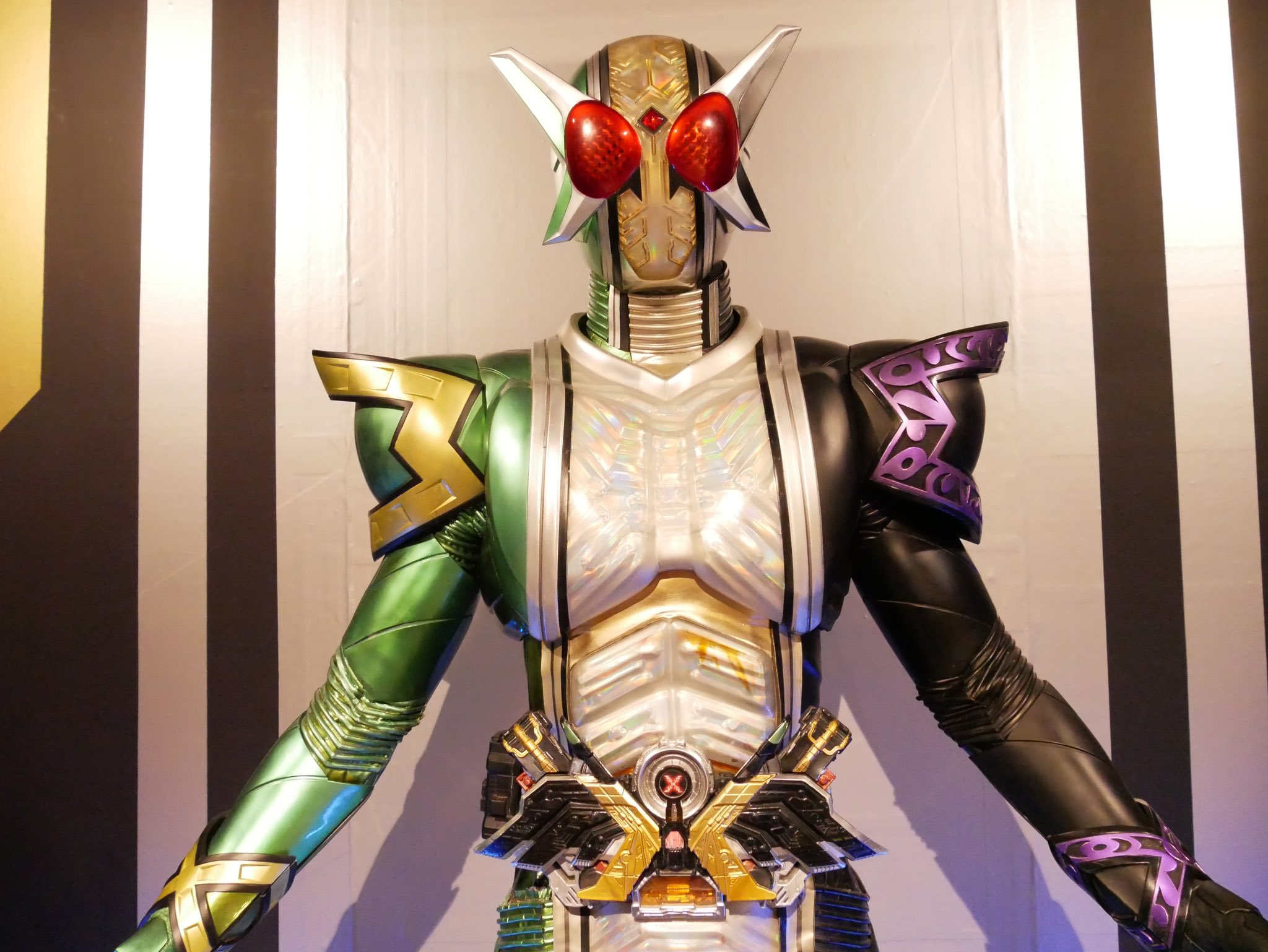 クリスタル部分が黄ばんでるエクストリーム、傷みが目立つ脇腹や関節に甲冑、色落ちした足元など戦いの歴史が感じられる撮影用スーツを見に京都行こう https://t.co/6JvQqaJTnJ