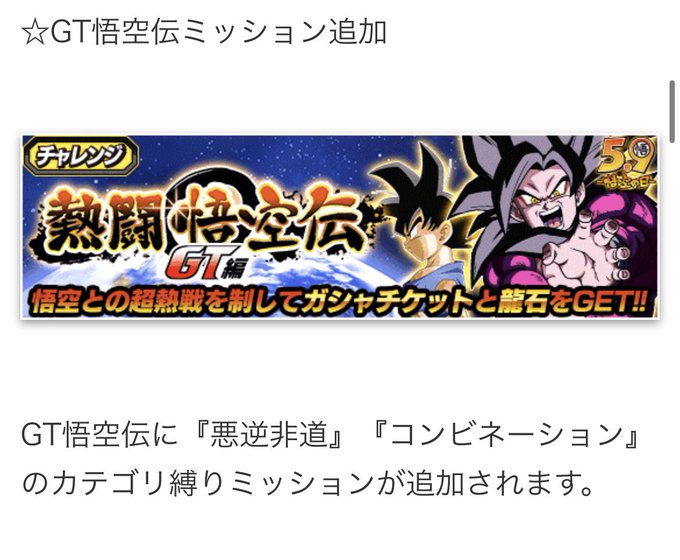 データイン情報から次回CPにてGT悟空伝に『悪逆非道』『コンビネーション』カテゴリ縛りミッションが追加されるとのこと。