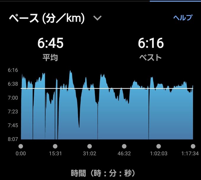 いつもは後半上げてしまうが、なんとかゆっくペースを保てました😃マラソンをノンストップで走りきるための脚作り⤴️ https://t.co/gzpU5HdpCC