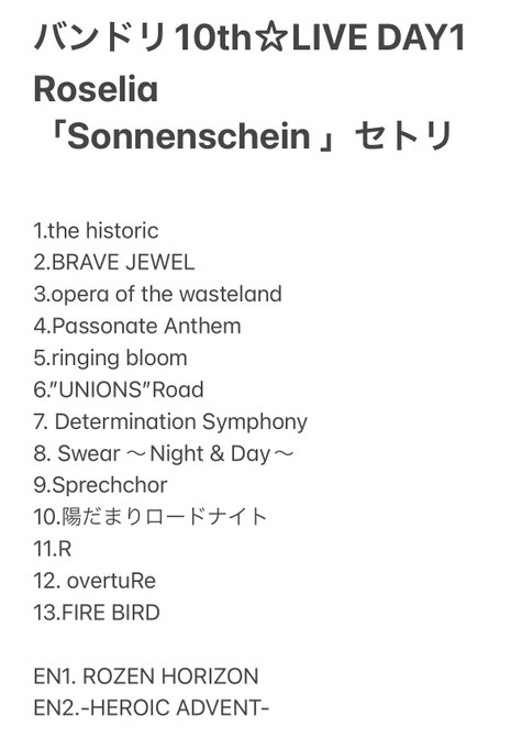 Roselia「Sonnenschein 」セットリスト