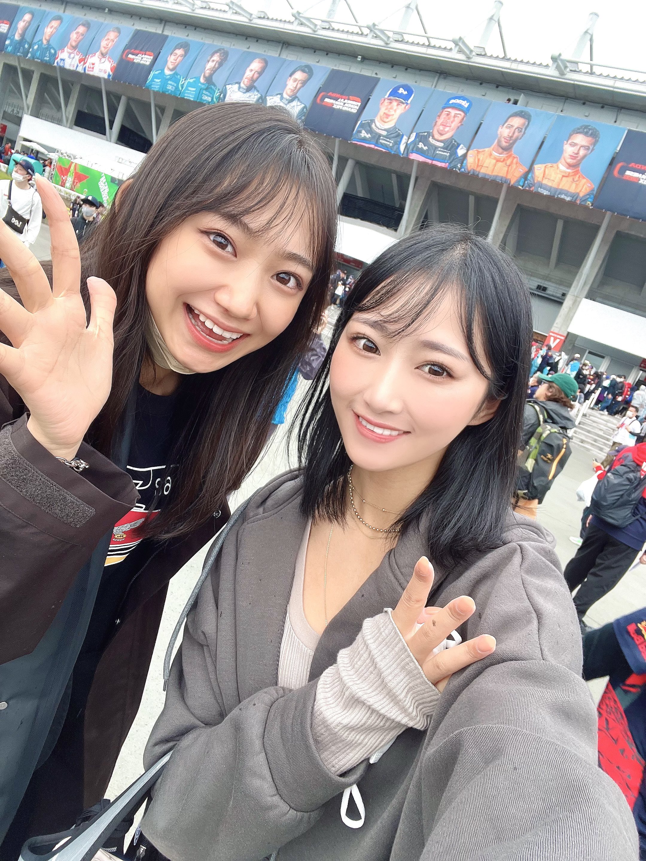 レースクイーンのお仕事でいつもピット側からしか入ったことなくて初めて鈴鹿サーキットのこっち側来れました!!! 写真はレースクイーンの先輩相沢さんと💓 #F1gp https://t.co/0gGwWvD3Od